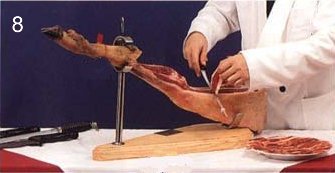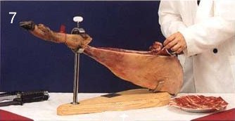 Now on the lower part of the serrano ham, (uppermost on the Jamonero)